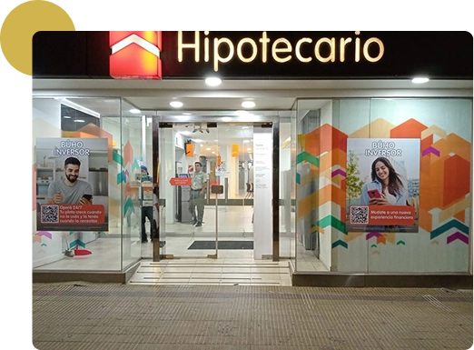 Para Banco Hipotecario desarrollamos una intervención gráfica integral en distintas sucursales, trabajando sobre elementos clave de la comunicación visual en el espacio de atención.