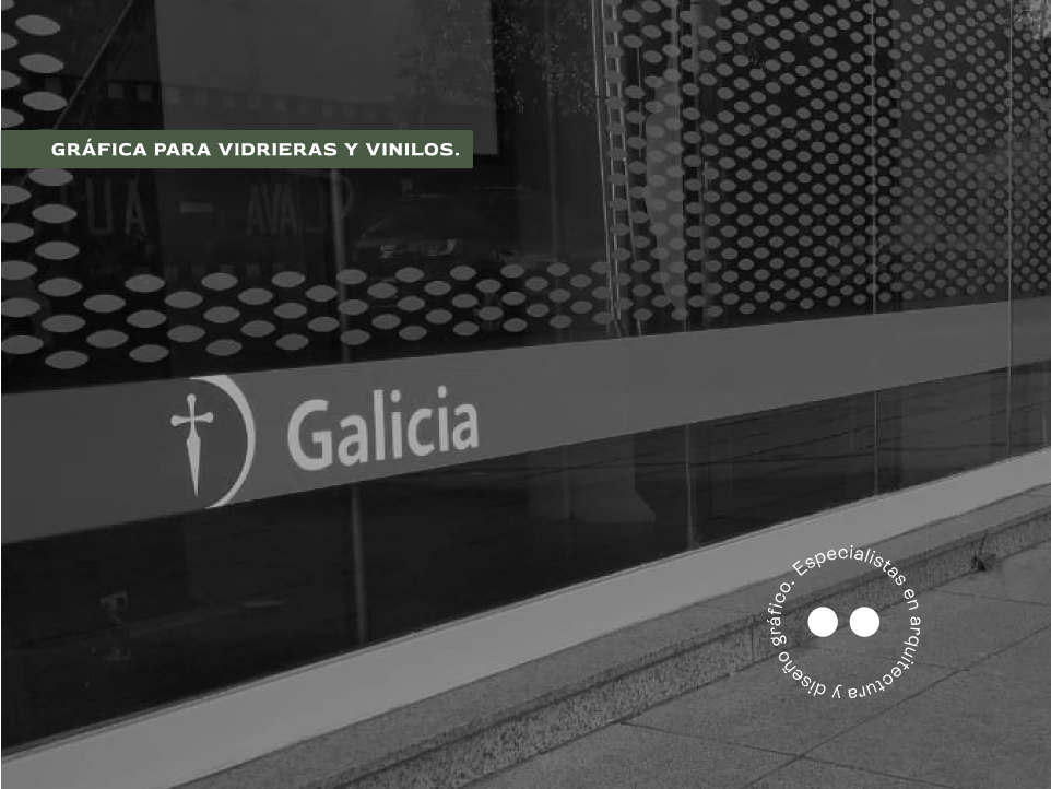 Desarrollamos soluciones gráficas para vidrieras y superficies vidriadas, pensadas para comunicar de forma clara sin interferir con la luz, la visibilidad ni la arquitectura del espacio.